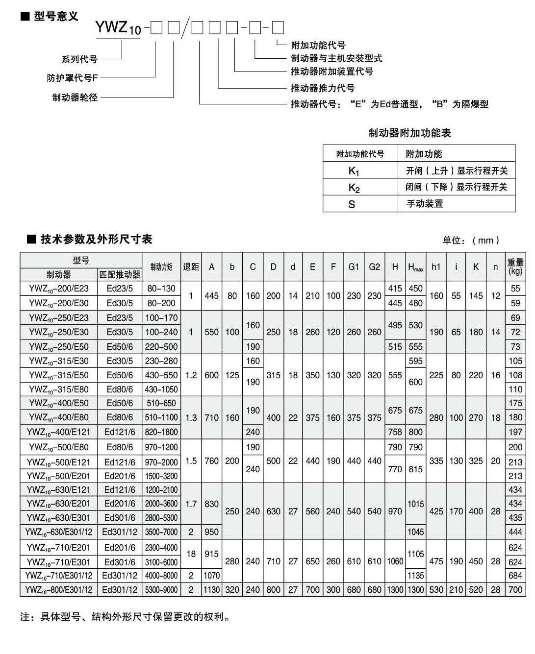 YWZ10,YWZ12系列電力液壓鼓式制動(dòng)器的連接尺寸和制動(dòng)力矩參數(shù)符合GB6333-86標(biāo)準(zhǔn),技術(shù)要求符合JB / T6406-2006標(biāo)準(zhǔn),配套符合DIN15430標(biāo)準(zhǔn)的Ed系列推動(dòng)器。